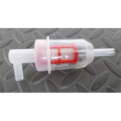 This little filter with a paper element can be a real life saver. It offers your first line of defence against ingress of dirt from your fuel tank to your engine. Great for protecting your main fuel filter. Body length : 55mm Tail lengths : 28mm Stepped tail ends accept 6mm or 8mm bore hose. Loads of applications from pressure washers and generators to large diesel engined compressors and plant, etc