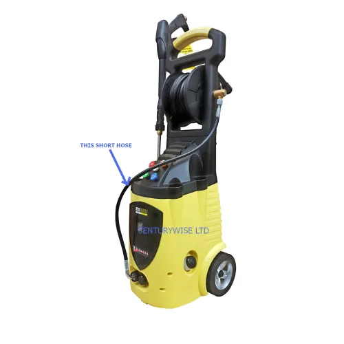 THIS HOSE FITS BETWEEN YOUR HOSE REEL, AND THE OUTLET AT BASE OF MACHINE