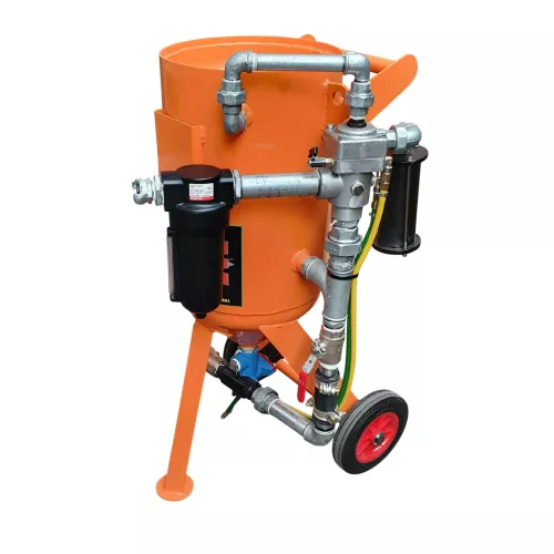 HOLDS APPROX. 75 KG OF MEDIA, SUFFICIENT FOR ABOUT 30 MINUTES OF CONTINUOUS BLASTING AT 100 PSI.